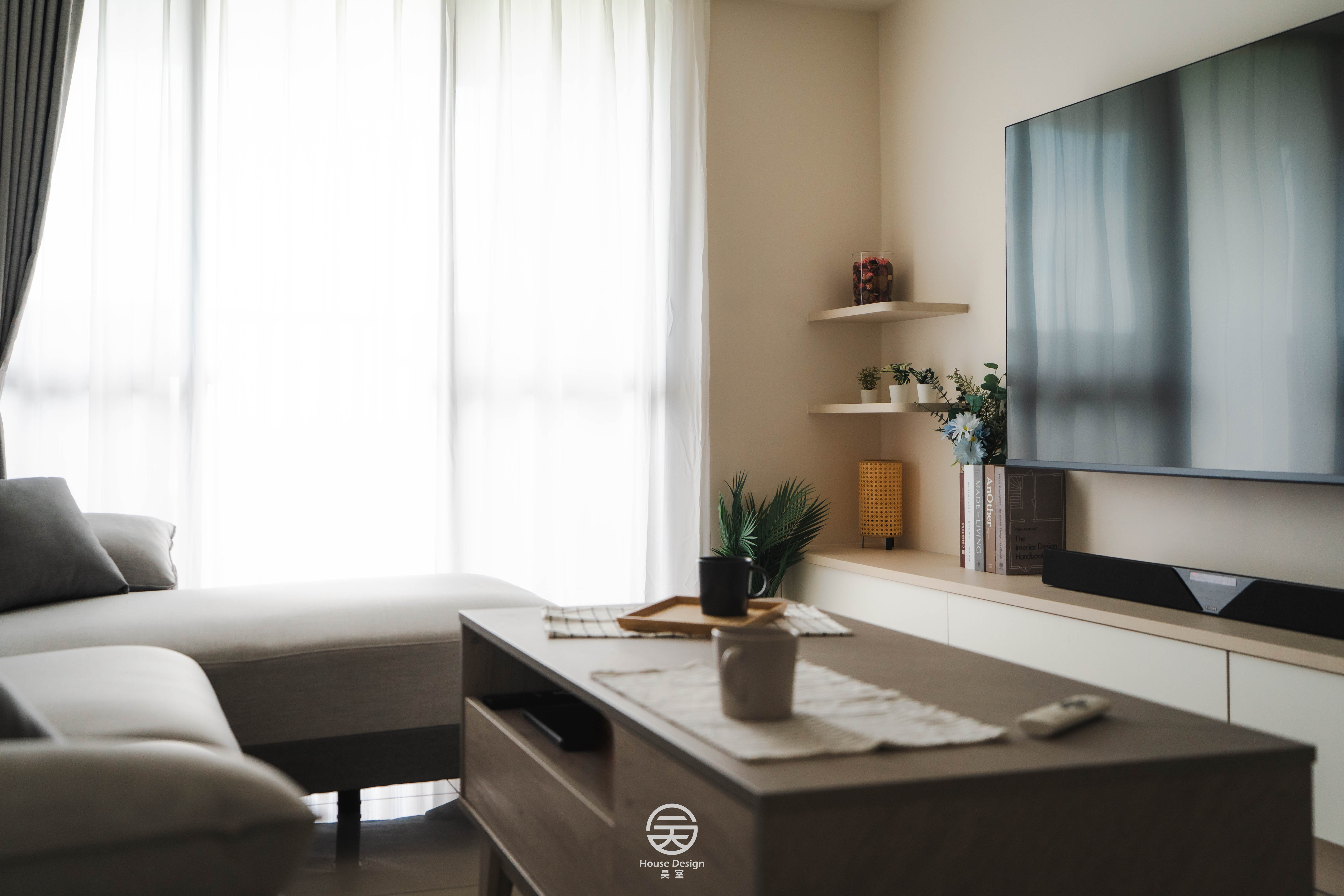 視聽之壁簡而不繁,几案設花,微露生活之趣,盡顯閒適之情。