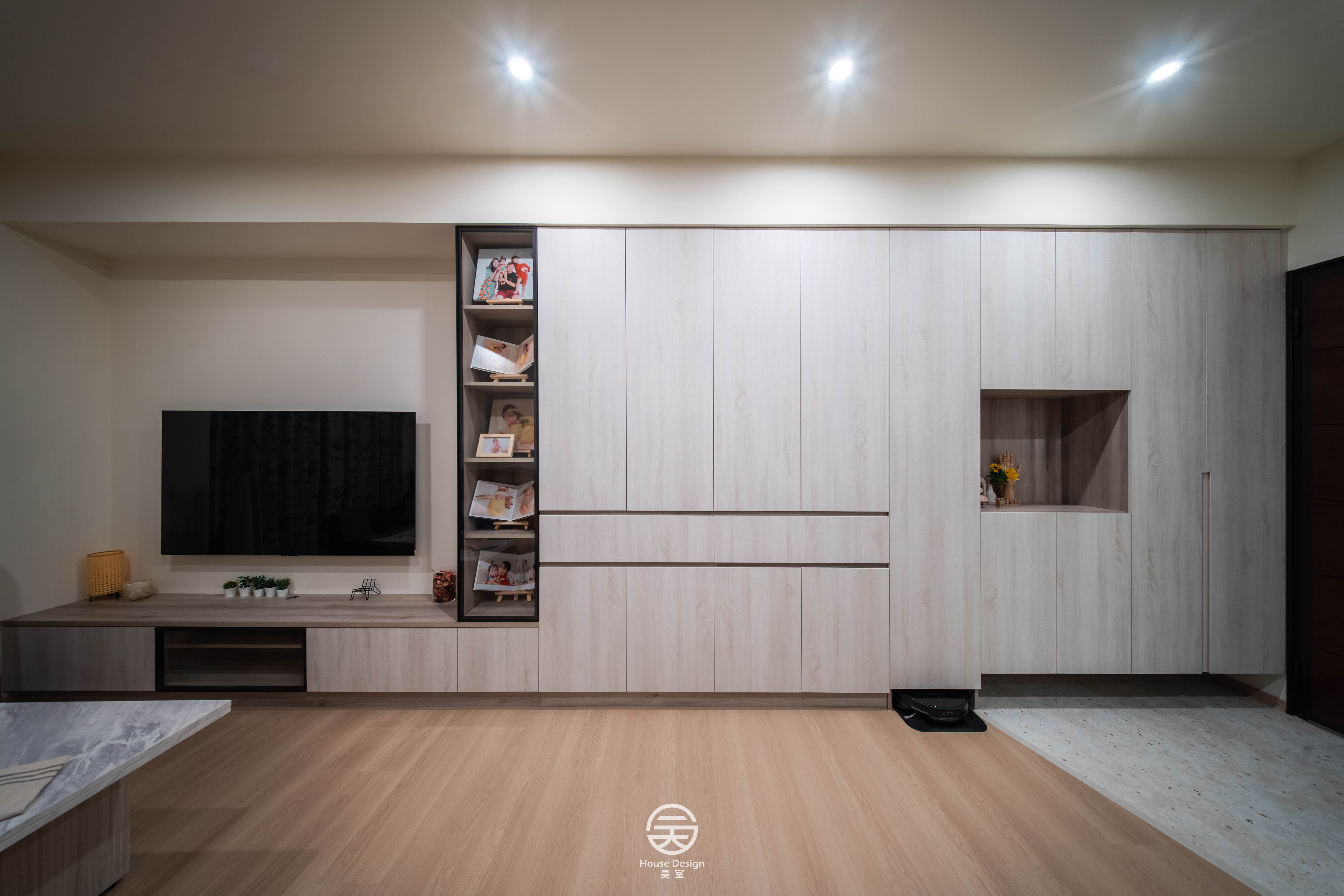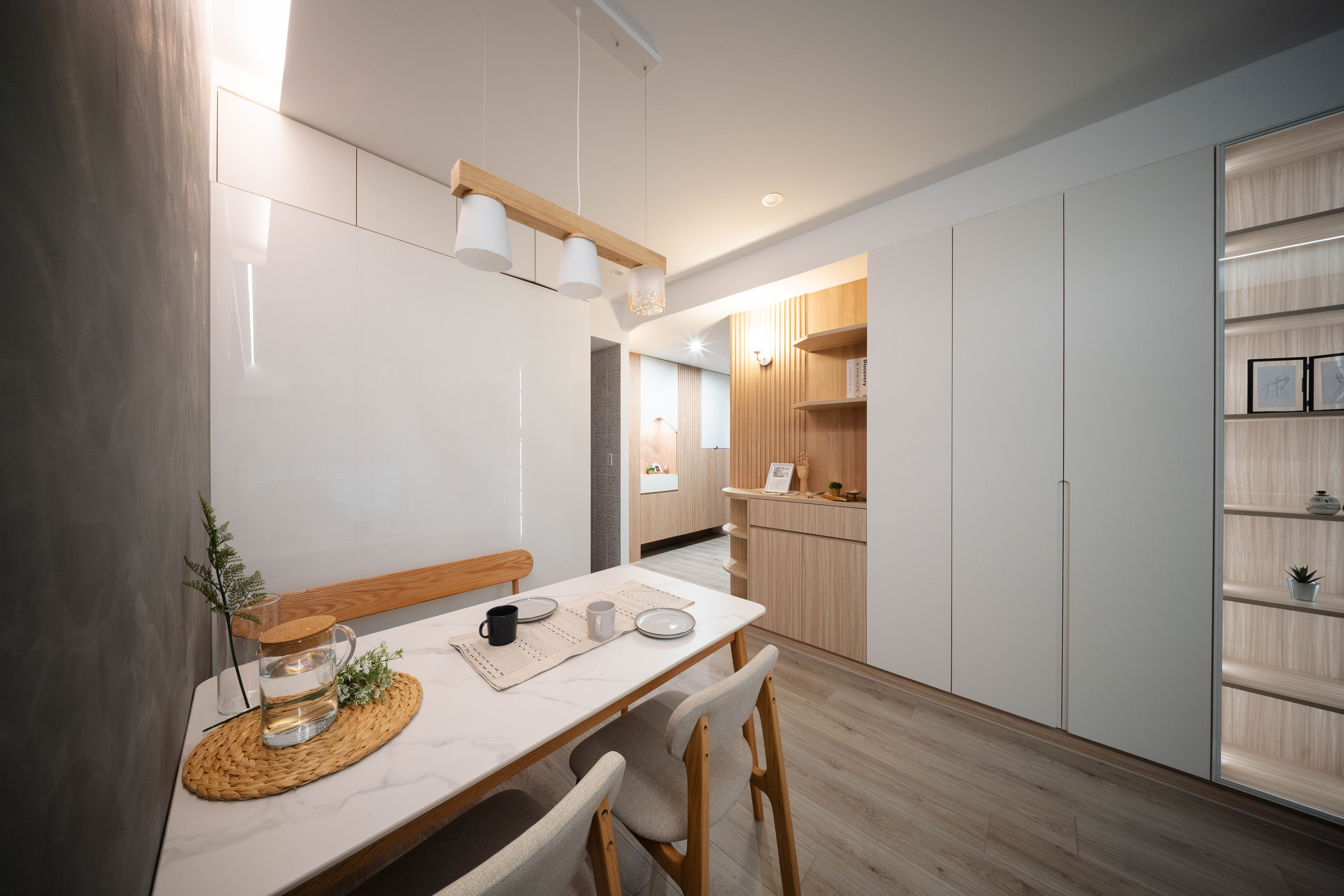 几案整然,植翠生意,燈影映於櫥櫃之間,恍若清風拂心,盡顯居者之閒雅與品味。